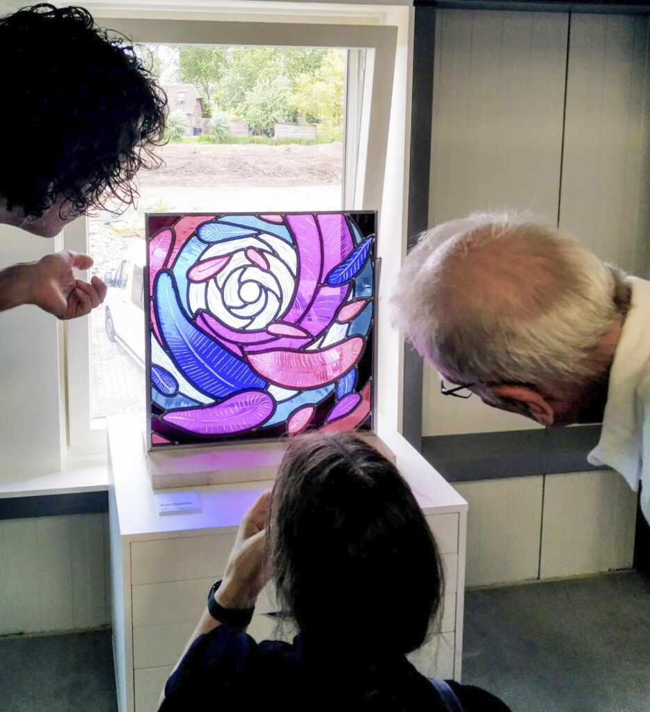 - Hierbij maak ik gebruik van glas in lood techniek, vaak in combinatie met een brandschildering.